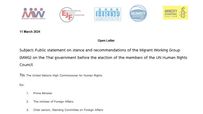 Open Letter: Public statement on stance and recommendations of the Migrant Working Group (MWG) on the Thai government before the election of the members of the UN Human Rights Council