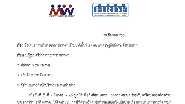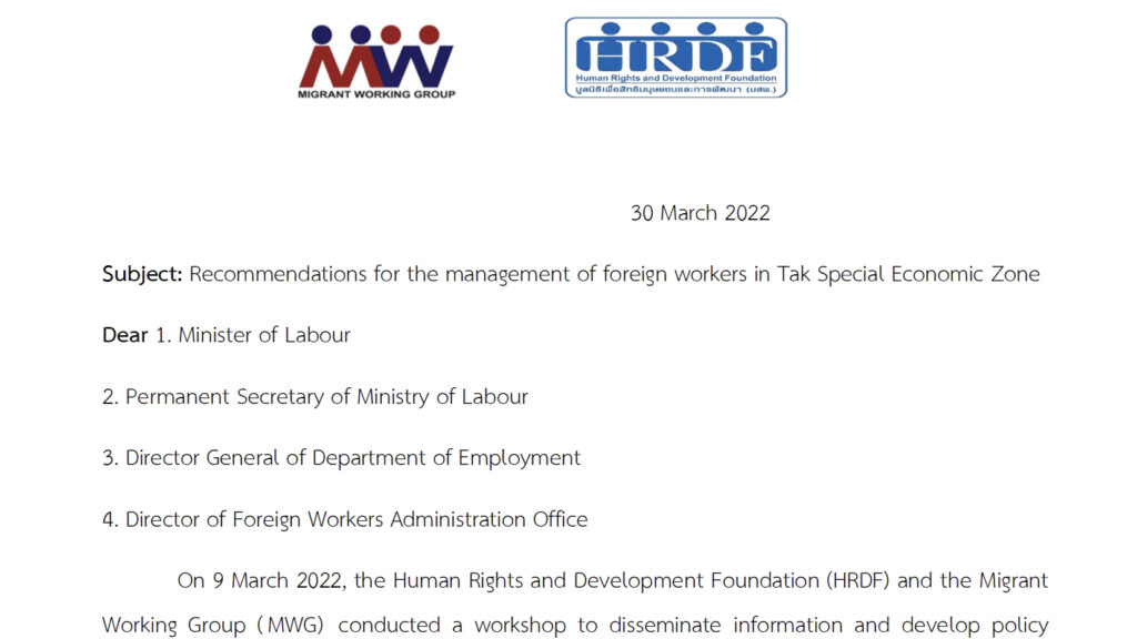 Recommendations for the management of foreign workers in Tak Special Economic Zone