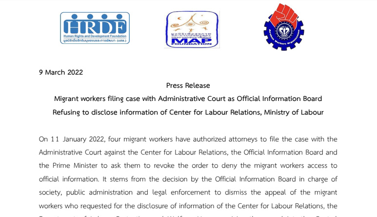 Press Release: Migrant workers filing case with Administrative Court as Official Information Board Refusing to disclose information of Center for Labour Relations, Ministry of Labour