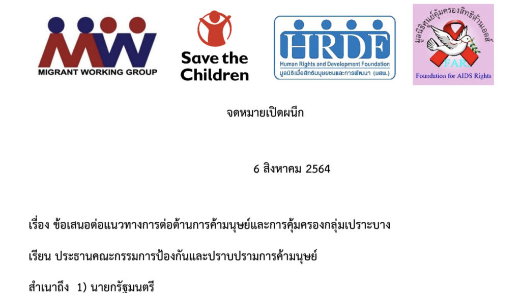 จดหมายเปิดผนึก: ข้อเสนอต่อแนวทางการต่อต้านการค้ามนุษย์และการคุ้มครองกลุ่มเปราะบาง