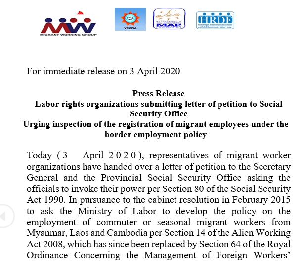 Press Release : Labor rights organizations submitting letter of petition to Social Security Office Urging inspection of the registration of migrant employees under the border employment policy
