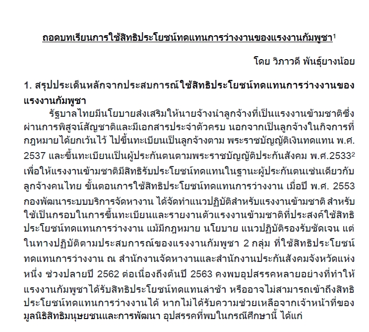 ถอดบทเรียนการใช้สิทธิประโยชน์ทดแทนการว่างงานของแรงงานกัมพูชา