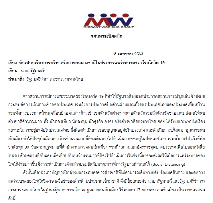 ข้อเสนอเรื่องการบริหารจัดการคนต่างชาติในช่วงการแพร่ระบาดของโรคโควิด-19