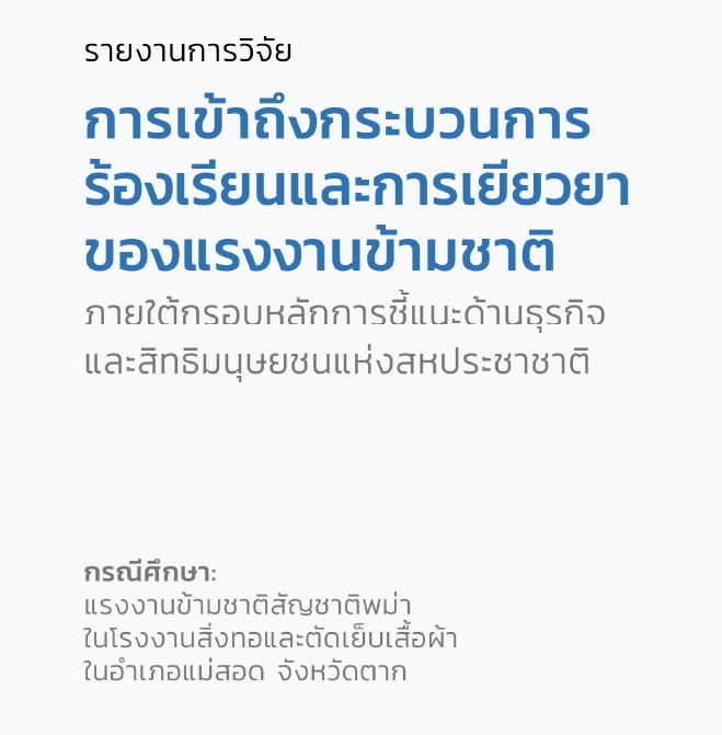 รายงานการวิจัย: การเข้าถึงกระบวนการร้องเรียนและการเยียวยาของแรงงานข้ามชาติ ภายใต้กรอบหลักการชี้แนะด้านธุรกิจและสิทธิมนุษยชนแห่งสหประชาชาติ
