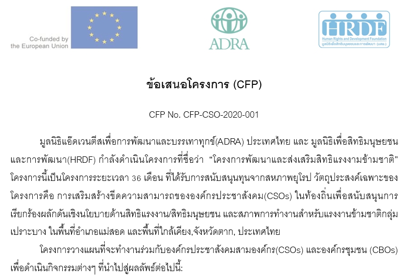 โครงการพัฒนาและส่งเสริมสิทธิแรงงามข้ามชาติ