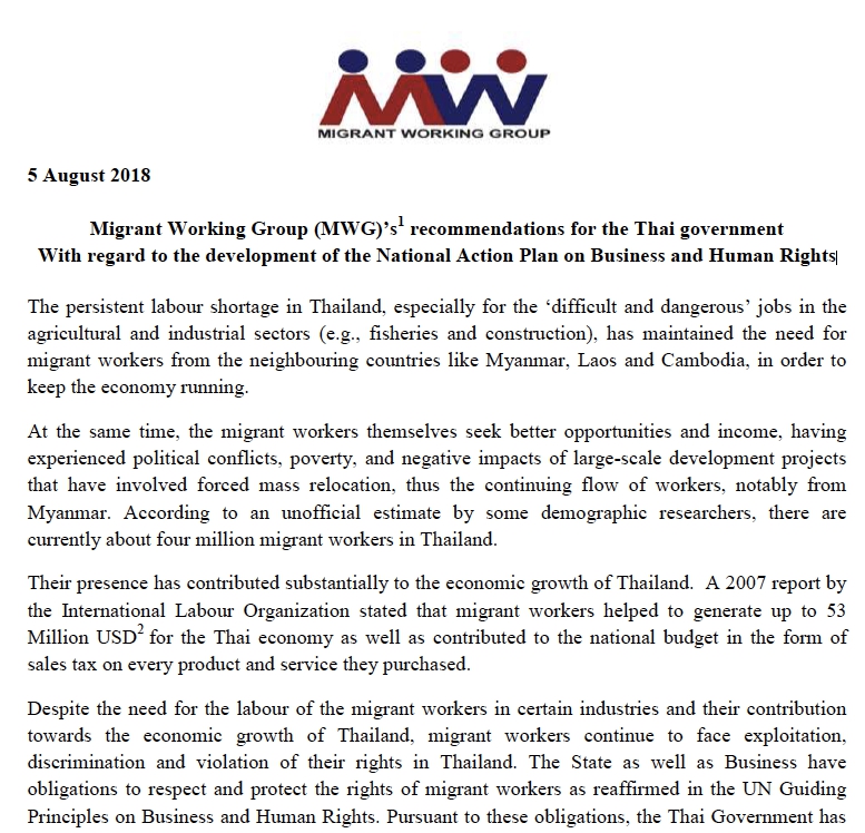 Migrant Working Group (MWG)’s1 recommendations for the Thai government With regard to the development of the National Action Plan on Business and Human Rights