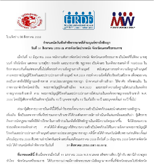 ใบแจ้งข่าว : กำหนดนัดวันฟังคำพิพากษาคดีค้ามนุษย์ชาวโรฮิงญา วันที่ 31 สิงหาคม 2559 ณ ศาลจังหวัดปากพนัง จังหวัดนครศรีธรรมราช