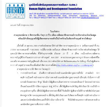 Press Release : Appeals Court Region 9 confirms 22-year-and-six-month-imprisonment of a former member of the Satun Provincial Administration Organization (PAO) and grants the request for the Rohingya victims to become co-plaintiffs in trafficking in persons charges