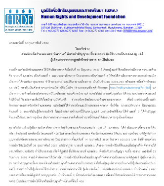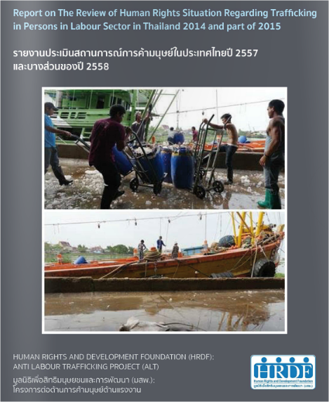HRDF Report on The Review of Human Rights Situation Regarding Trafficking in Persons in Labour Sector in Thailand 2014 and part of 2015รายงานประเมินสถานการณ์การค้ามนุษย์ในประเทศไทยปี 2557 และบางส่วนของปี 2558