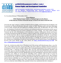 Press Release: WHO Thailand Senior Staffer in Thailand Agrees to Pay Money to His Domestic Workers Networks Ready to Push on for Better Domestic Law
