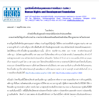 ใบแจ้งข่าว ลูกจ้างทำงานบ้านชาวเอธิโอเปีย ยื่นฟ้องเจ้าหน้าที่ระดับสูงขององค์การอนามัยโลกประจำประเทศไทย กรณีละเมิดสิทธิลูกจ้างตามกฎหมายอาญา และตามความผิดพระราชบัญญัติป้องกันและปราบปรามการค้ามนุษย์