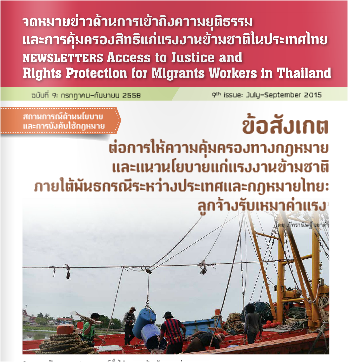 NEWSLETTERS ACCESS TO JUSTICE AND RIGHTS PROTECTION FOR MIGRANTS WORKERS IN THAILAND 9th issue: July-September 2015จดหมายข่าวด้านการเข้าถึงความยุติธรรมและการคุ้มครองสิทธิแก่แรงงานข้ามชาติในประเทศไทย ฉบับที่ 9 เดือน ก.ค.-ก.ย.58