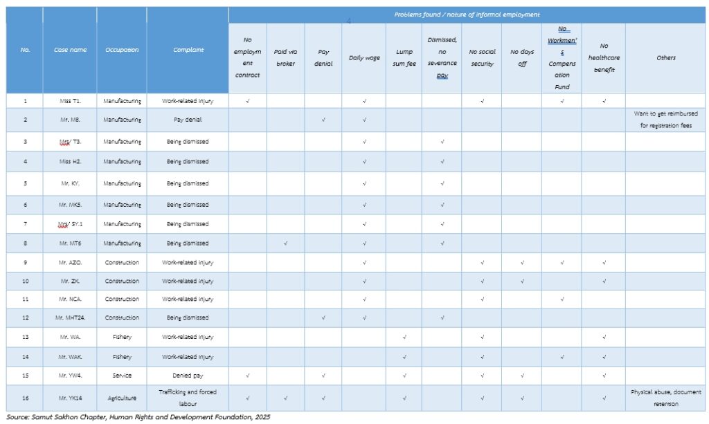 Source: Samut Sakhon Chapter, Human Rights and Development Foundation, 2025
