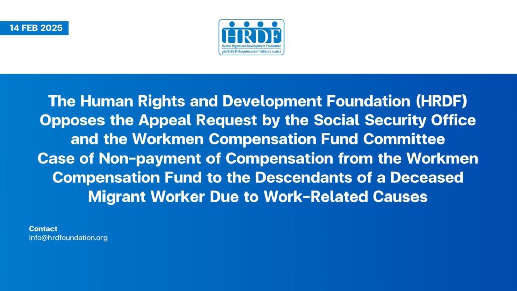 PRESS RELEASE: The Human Rights and Development Foundation (HRDF) Opposes the Appeal Request by the Social Security Office and the Workmen Compensation Fund Committee Case of Non-payment of Compensation from the Workmen Compensation Fund to the Descendants of a Deceased Migrant Worker Due to Work-Related Causes