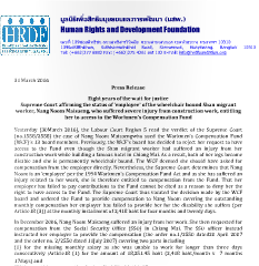 Press Release: Eight years of the wait for justice. Supreme Court affirming the status of ‘employee’ of the wheelchair bound Shan migrant worker to access to the Workmen’s Compensation Fund