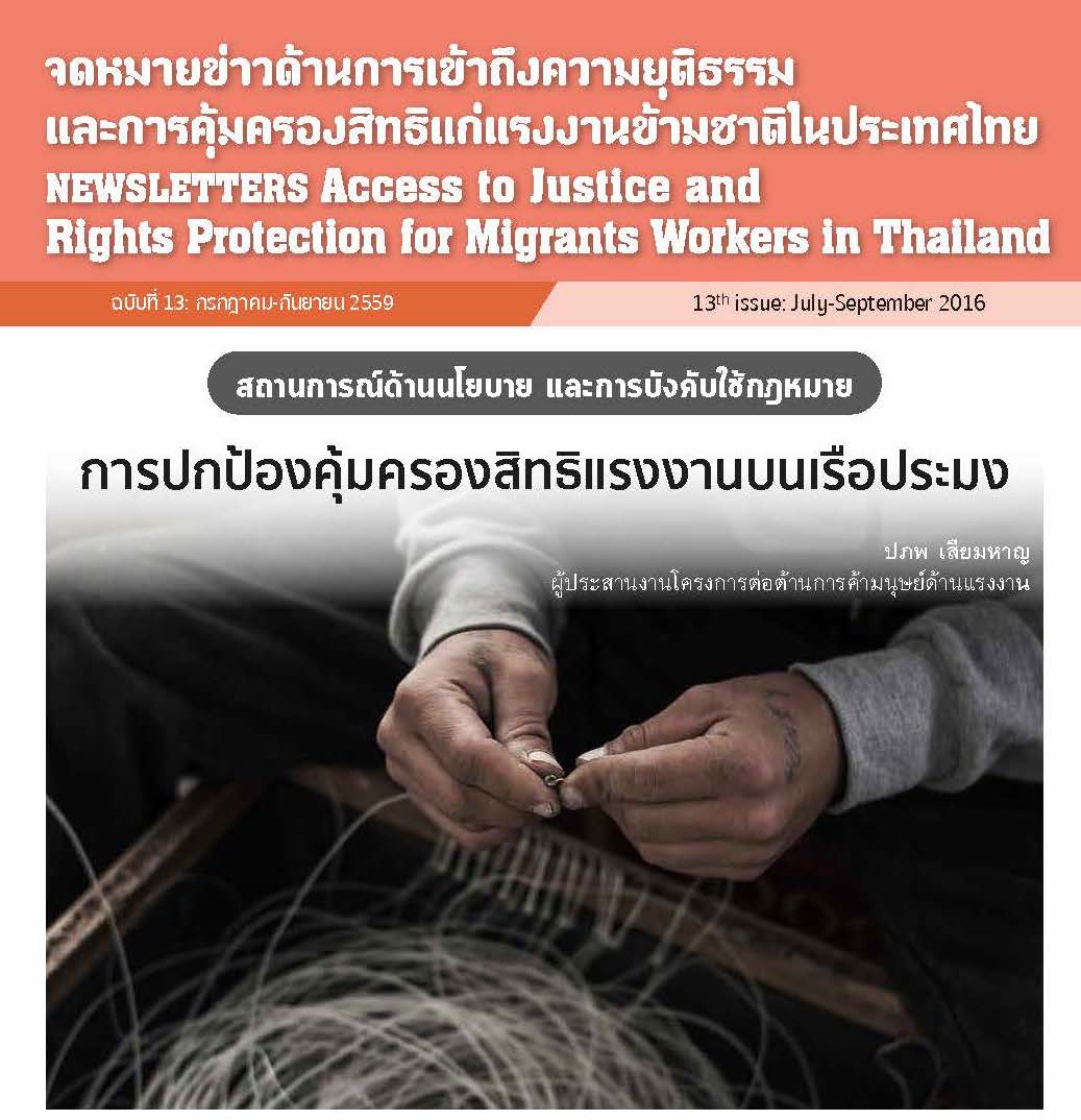 NEWSLETTERS ACCESS TO JUSTICE AND RIGHTS PROTECTION FOR MIGRANTS WORKERS IN THAILAND 13TH ISSSUE: July – September 2016จดหมายข่าวด้านการเข้าถึงความยุติธรรมและการคุ้มครองสิทธิแก่แรงงานข้ามชาติในประเทศไทย ฉบับที่13: กรกฎาคม – กันยายน 2559