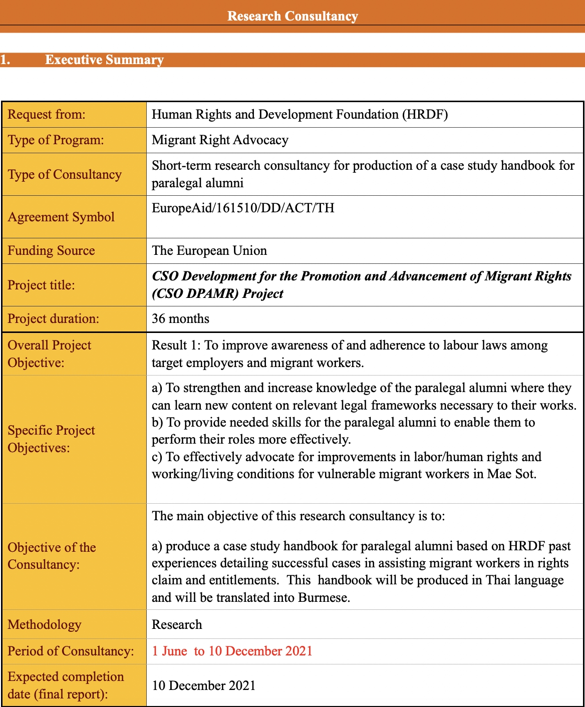 - Translation of a case study handbook from Thai to Burmese, art work and publication do not include in this consultancy.