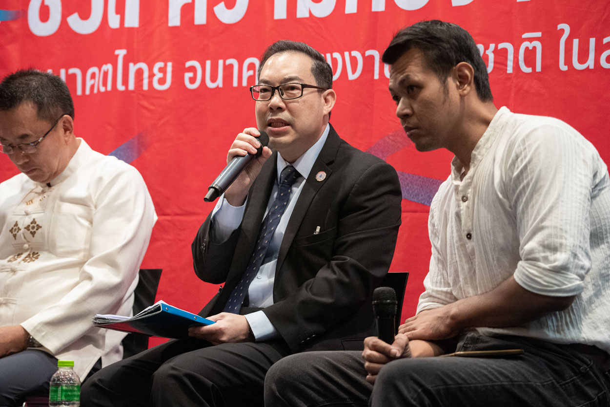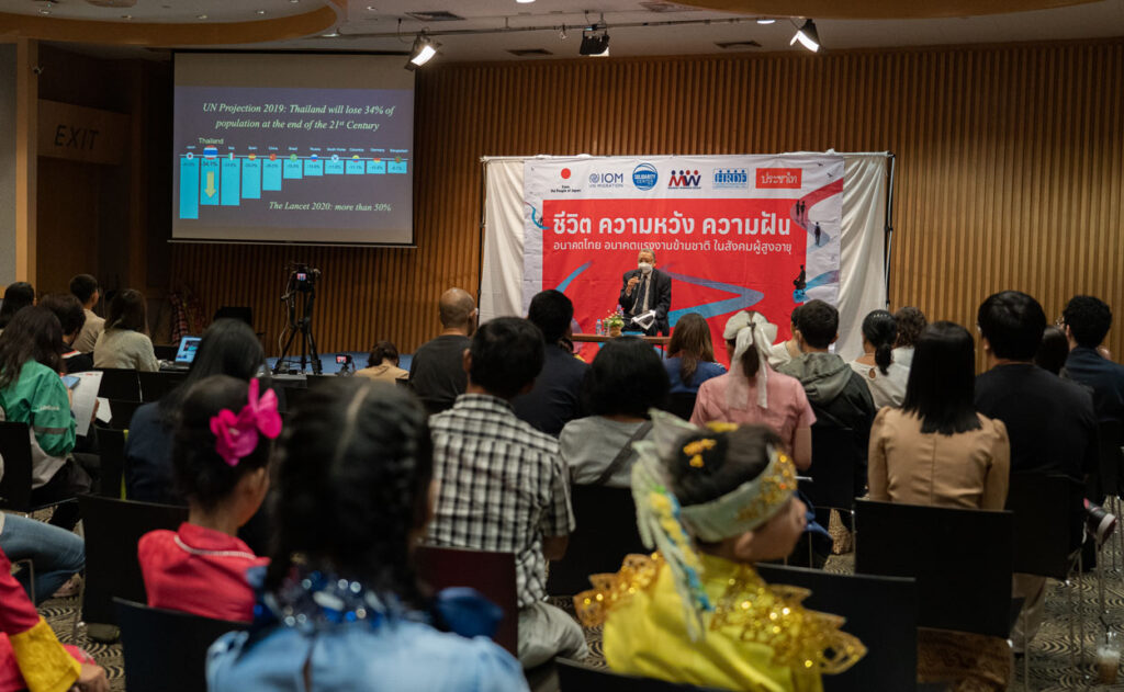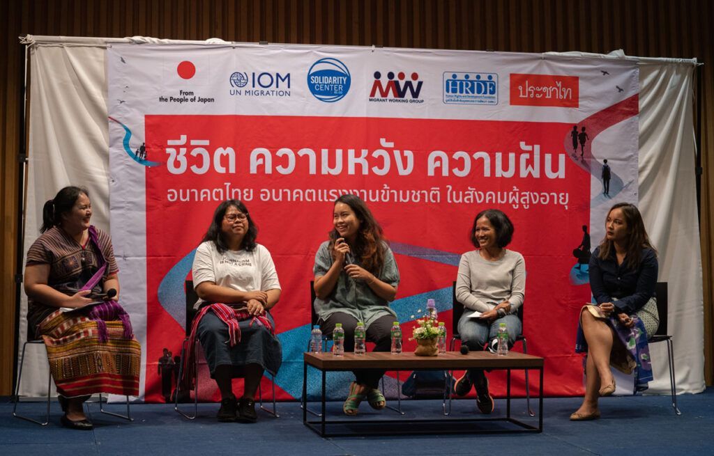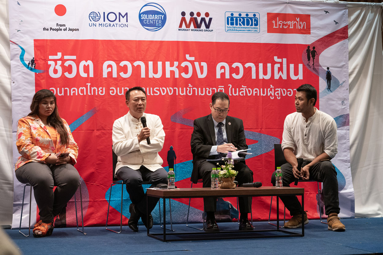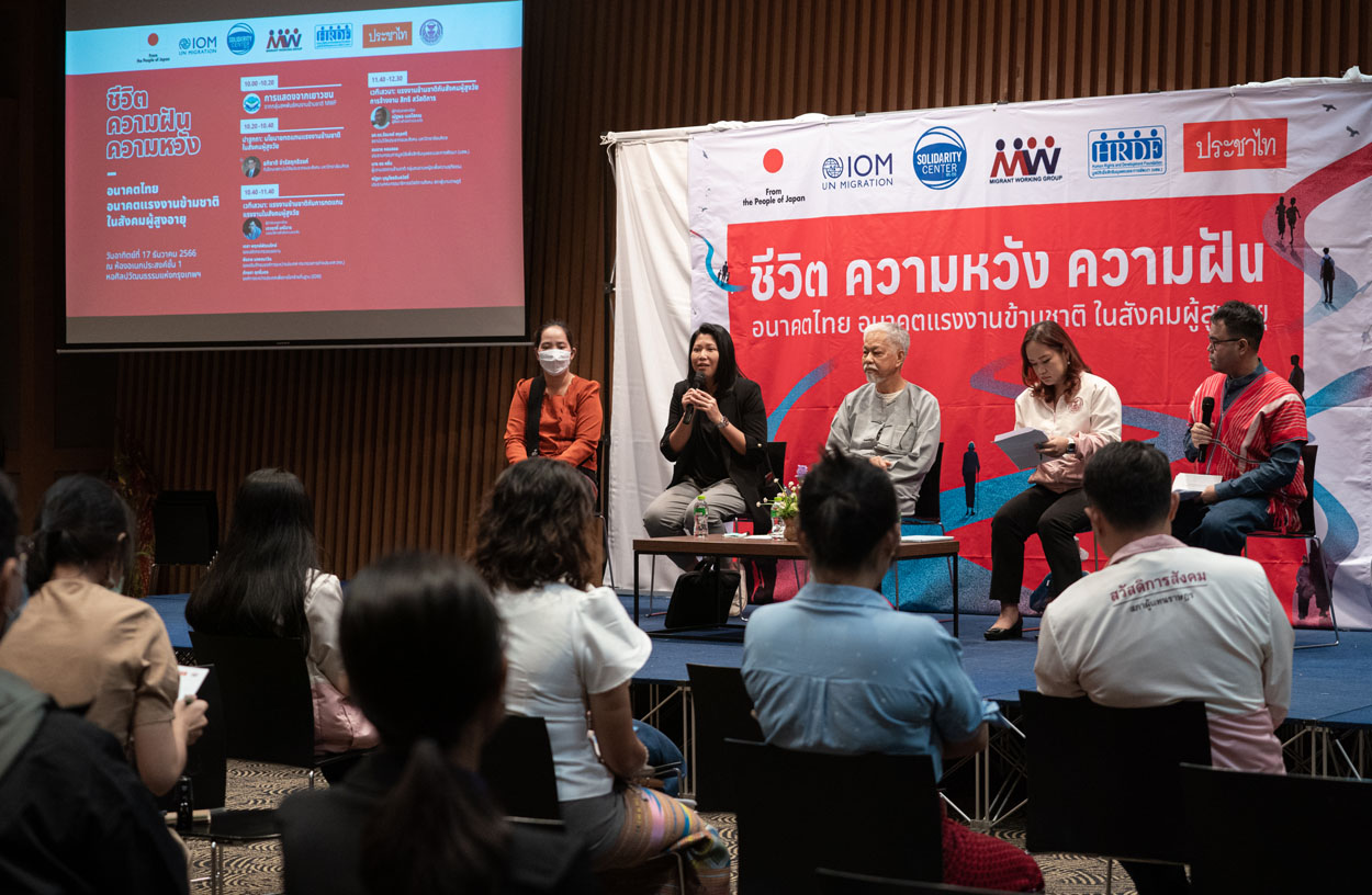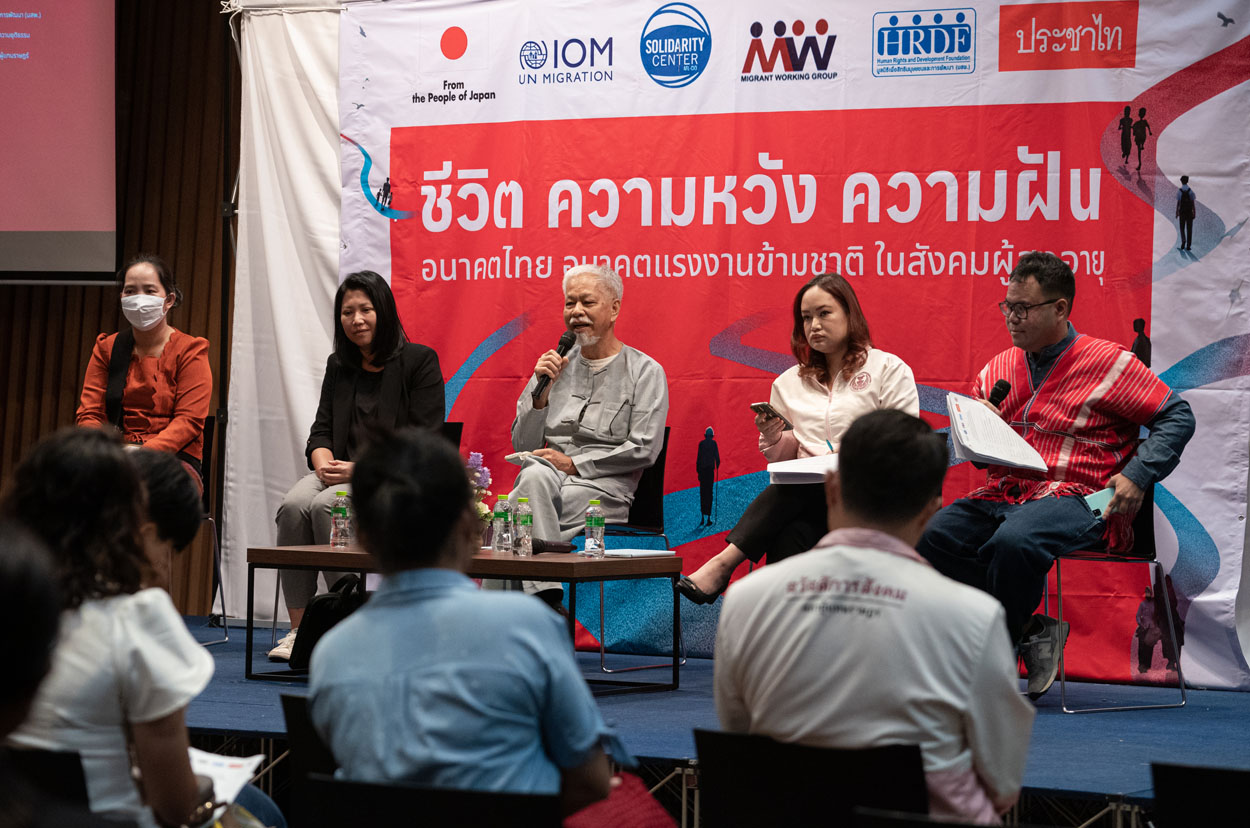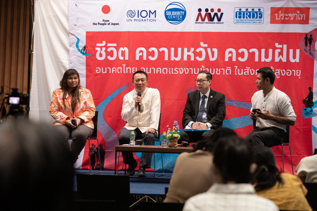 ขอขอบคุณวิทยากร และผู้ดำเนินรายการ กิจกรรมเสวนา ทั้ง 4 หัวข้อ นโยบายทดแทนแรงงานข้ามชาติในสังคมผู้สูงวัย, แรงงานข้ามชาติกับการทดแทนแรงงานในสังคมผู้สูงวัย, แรงงานข้ามชาติกับสังคมผู้สูงวัย : การจ้างงาน สิทธิ สวัสดิการ และแรงงานข้ามชาติในงานสื่อสารเพื่อลดอคติของคนทำงานในประเทศไทย
