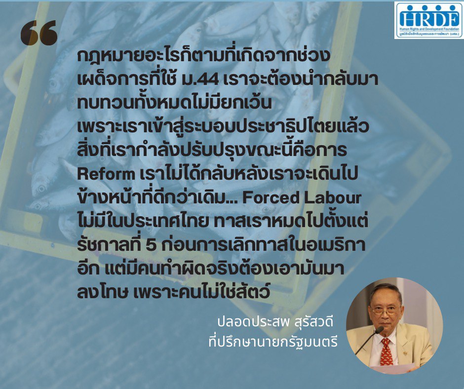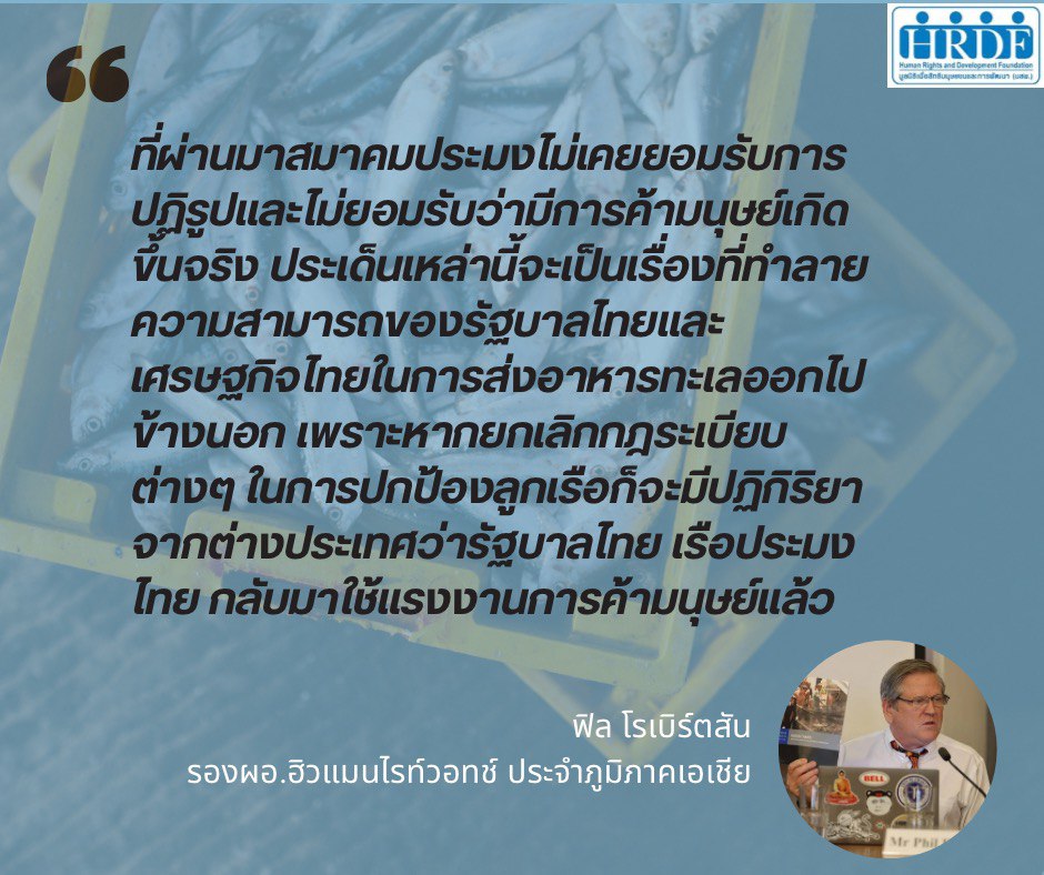 โดยภาคประชาสังคมจับตาเรื่องข้อห่วงใยและข้อเสนอต่อการมาตรการแก้ไขกฎหมายประมงของประเทศไทย #ออกแถลงการณ์ของเครือข่ายองค์กรด้านประชากรข้ามชาติและภาคประชาสังคม เรื่องข้อห่วงใยและข้อเสนอต่อการมาตรการแก้ไขกฎหมายประมงของประเทศไทย ในวันที่ 18 มกราคม 2567 https://hrdfoundation.org/?p=3428