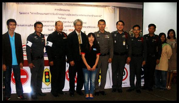 ให้เกียรติประธานกล่าวเปิดการฝึกอบรม เนื่องจากตามที่กรมขนส่งทางบกได้ประกาศเปลี่ยนแปลงนโยบาย โดยอนุญาตให้แรงงานข้ามชาติ สามารถจดทะเบียนมีชื่อเป็นเจ้าของรถและโอนรถได้ แม้จะยังไม่อนุญาตให้มีใบอนุญาตขับขี่ แต่มีแรงงานข้ามชาติจำนวนมากได้จดทะเบียนเป็นเจ้าของรถ และขับขี่รถบนทางโดยไม่มีหรือขาดความรู้ความเข้าใจเกี่ยวกับป้ายสัญญาณจราจร เครื่องหมายจราจร สัญญาณจราจร และลักษณะการขับขี่ที่ถูกต้อง ซึ่งอาจก่อให้เกิดอุบัติเหตุทางถนนเพิ่มขึ้น ทางมูลนิธิและกลุ่มงานจราจรได้ตะหนักถึงความสำคัญของปัญหาดังกล่าว จึงจัดให้มีการสัมนาให้ความรู้ความเข้าใจการขับขี่ปลอดภัยแก่แรงงานข้ามชาติดังกล่าวขึ้น