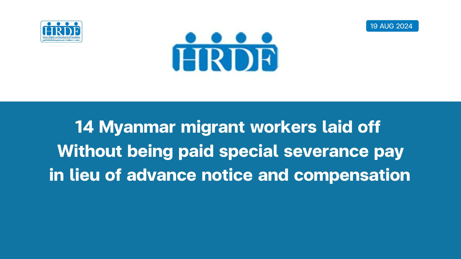 The case stems from the incidence on 4 March 2024 when 14 Myanmar migrant workers employed for general work by a company in Phuket have requested for help from the Human Rights and Development Foundation (HRDF) as they were laid off by their employer since 8 March 2024 without being paid their special severance pay in lieu of advance notice and compensation. HRDF staff thus helped the employees to apply for assistance from the provincial authorities as follows;