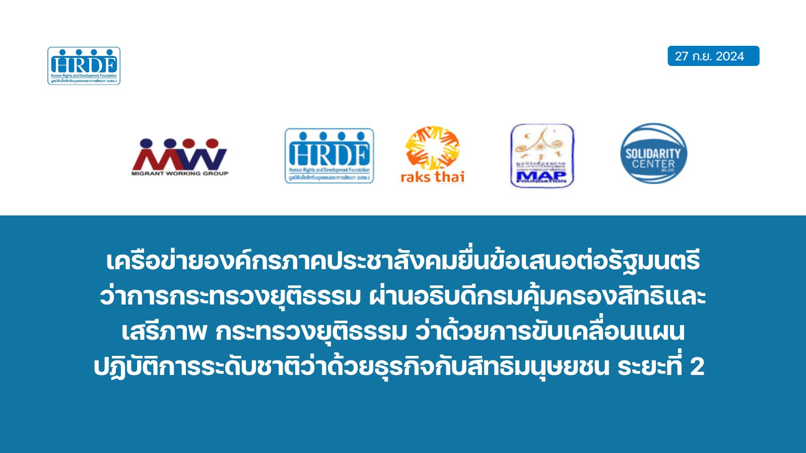 เรื่อง ข้อเสนอเครือข่ายองค์กรภาคประชาสังคมต่อการขับเคลื่อนแผนปฏิบัติการระดับชาติว่าด้วยธุรกิจกับสิทธิมนุษยชน ระยะที่ 2