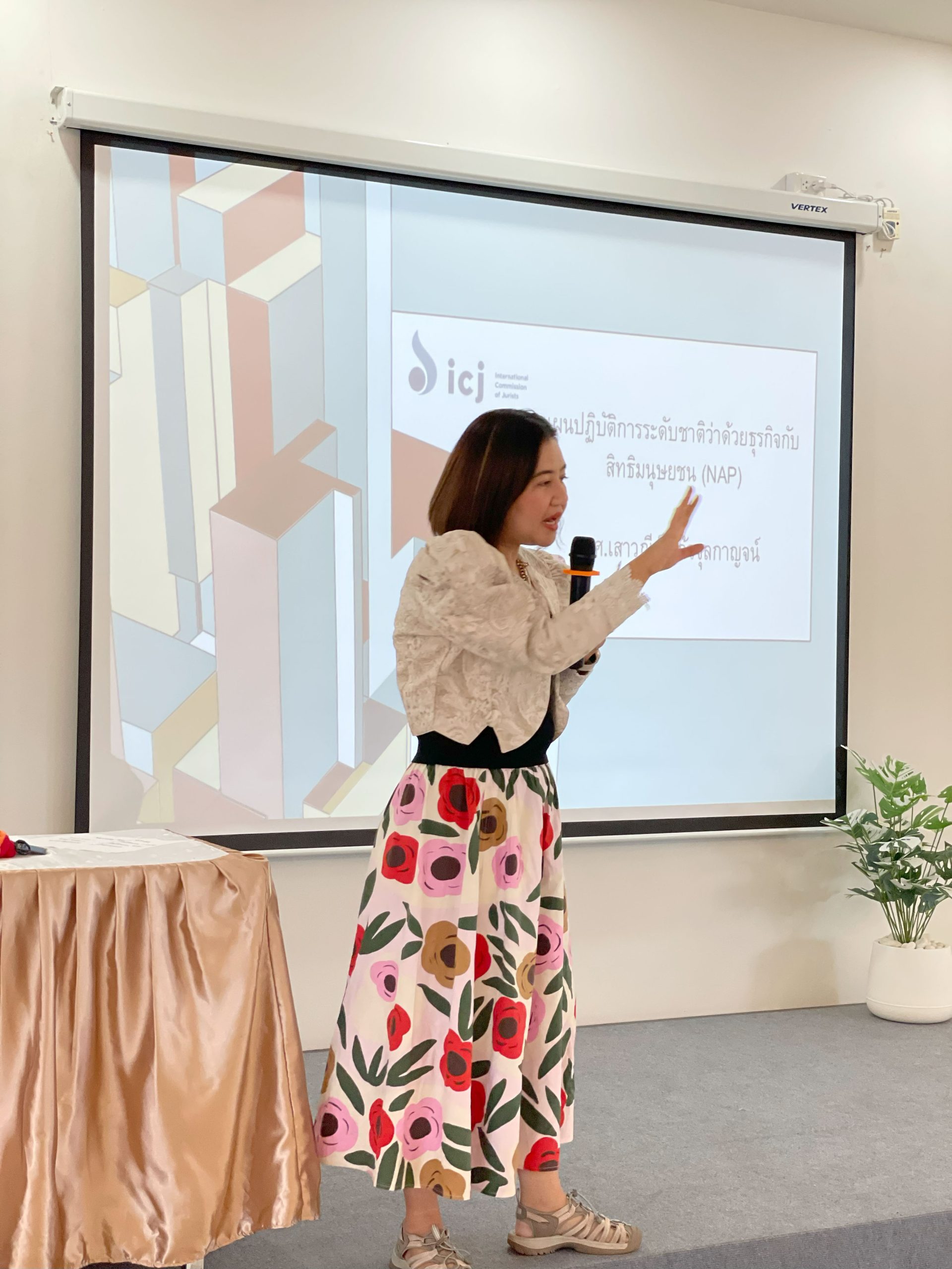 - คุณเสาวณีย์ แก้วจุลกาญจน์ จากคณะกรรมการนักนิติศาสตร์สากล (ICJ) ก็ได้แชร์ข้อมูลเกี่ยวกับ แผนปฏิบัติการว่าด้วยธุรกิจกับสิทธิมนุษยชน ซึ่งเป็นแผนที่เน้นถึงความสำคัญของการเคารพสิทธิในทุกระดับของการดำเนินธุรกิจ