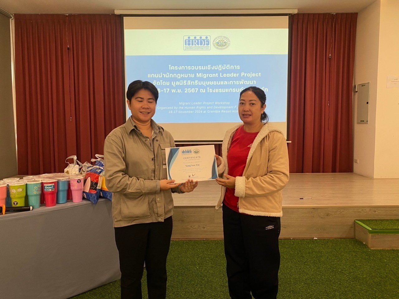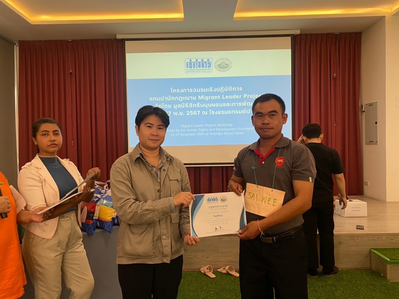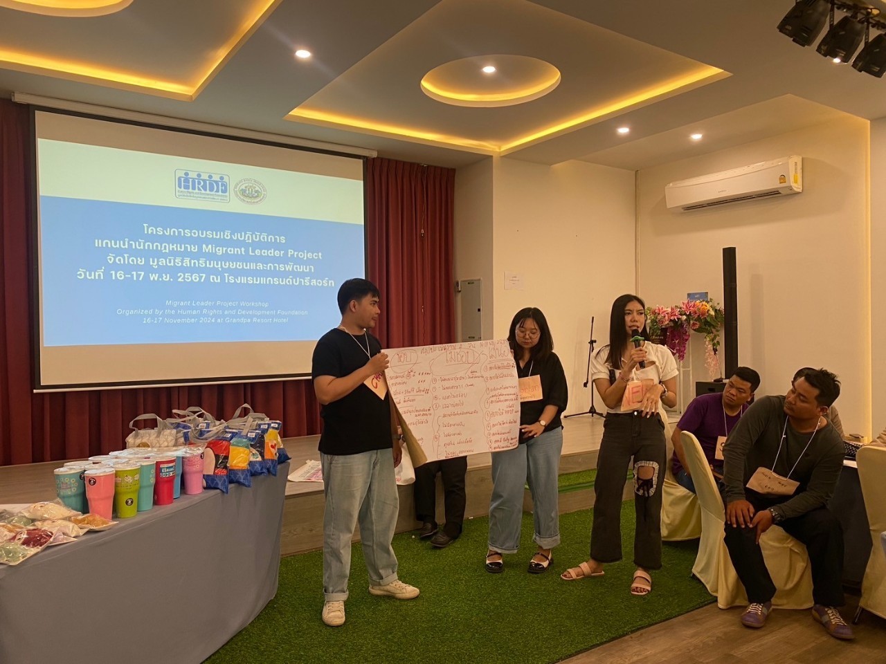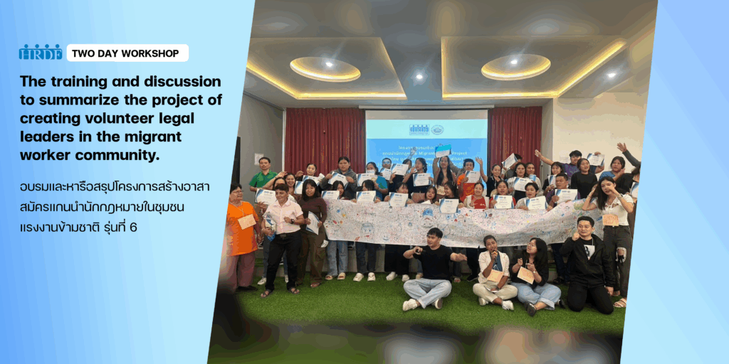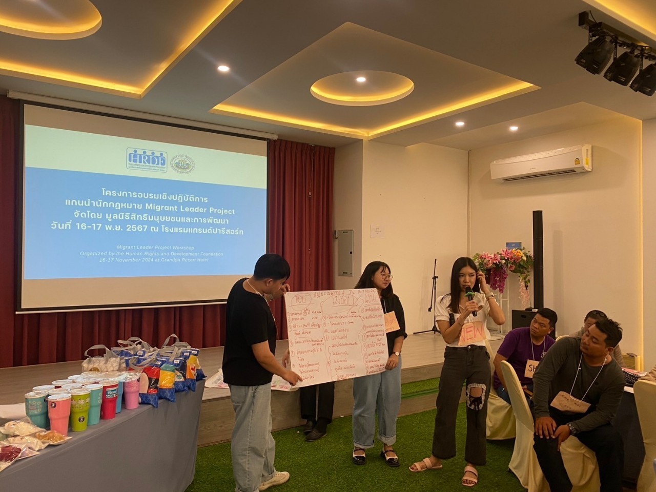 On November 16 and 17, 2024, the Human Rights and Development Foundation, in collaboration with the กลุ่มคนงานหญิงเพื่อความยุติธรรม WJG and the Migrant Workers Federation, organized a two-day workshop to discuss and summarize the creation of volunteer legal leaders in migrant worker communities. The event, which took place at the Grand Pa Resort Hotel in Lamphun Province, covered both Chiang Mai and Lamphun areas.