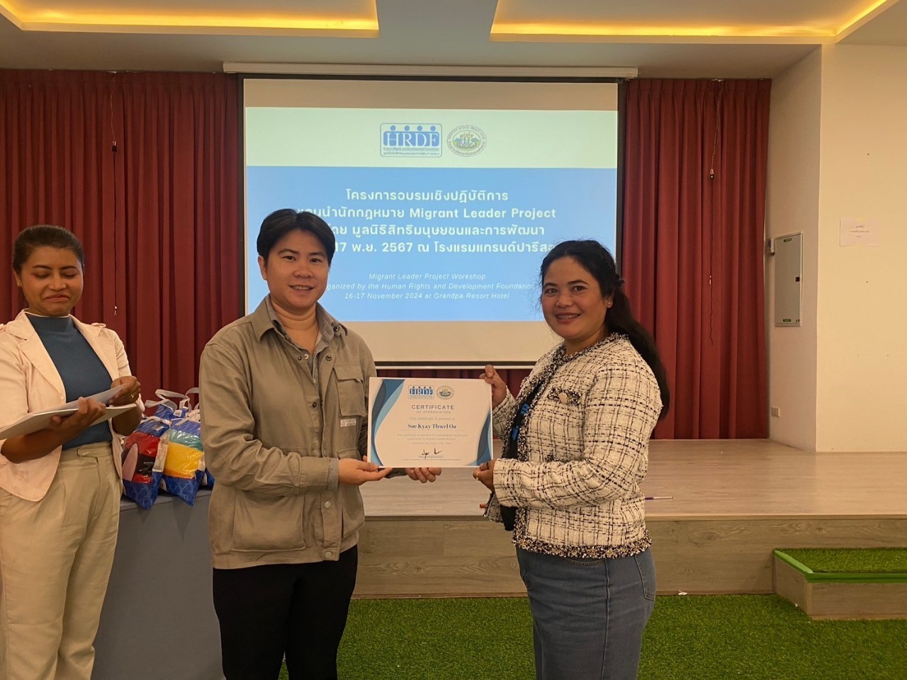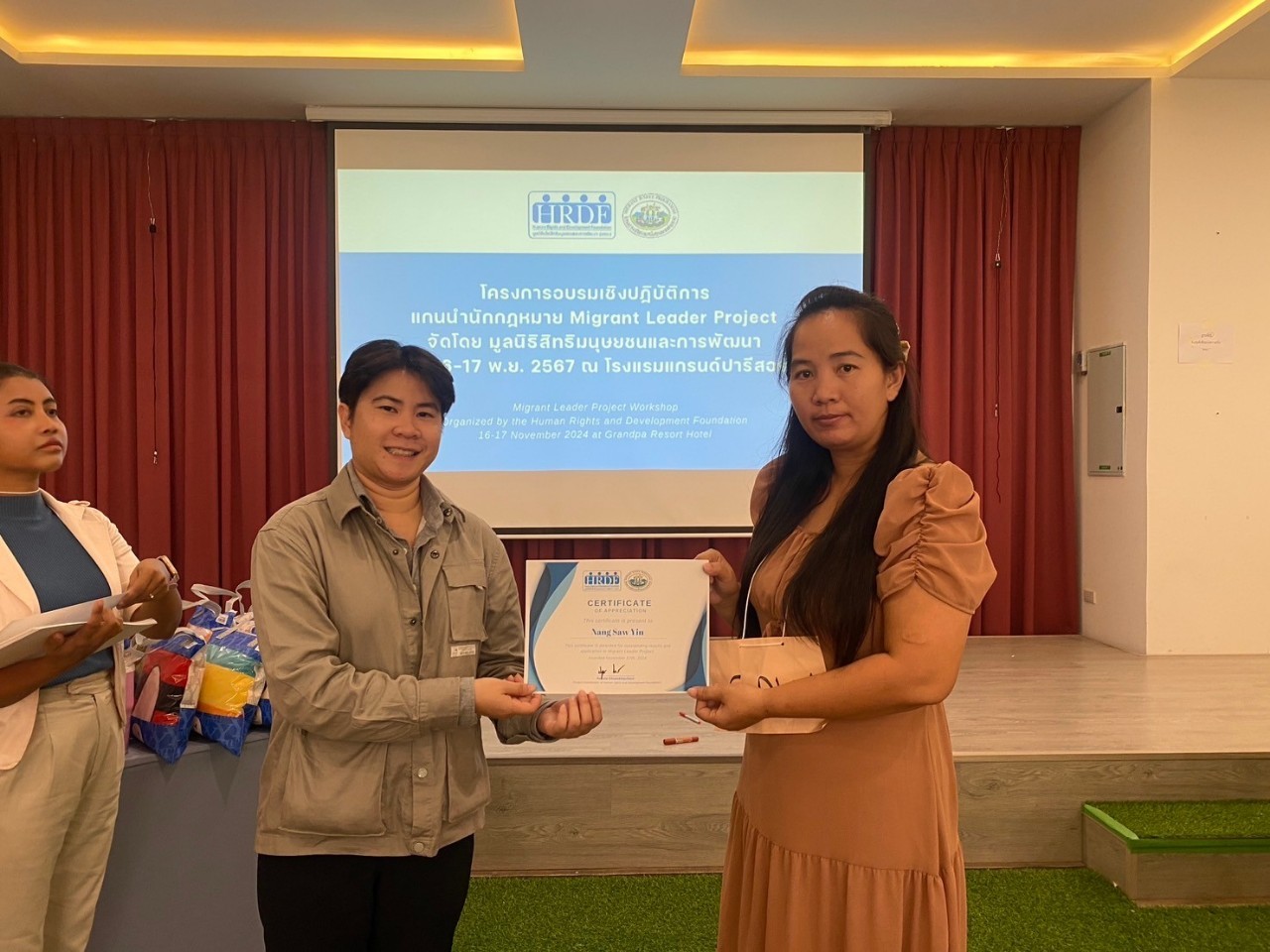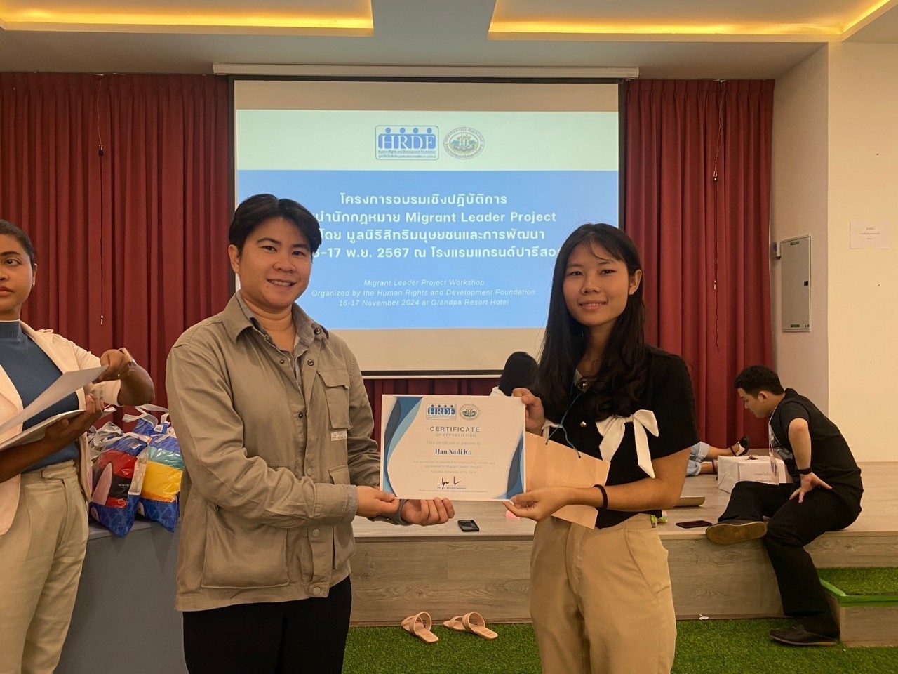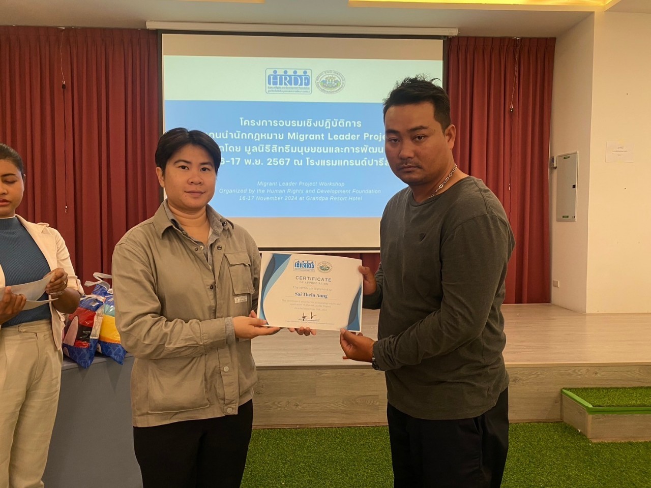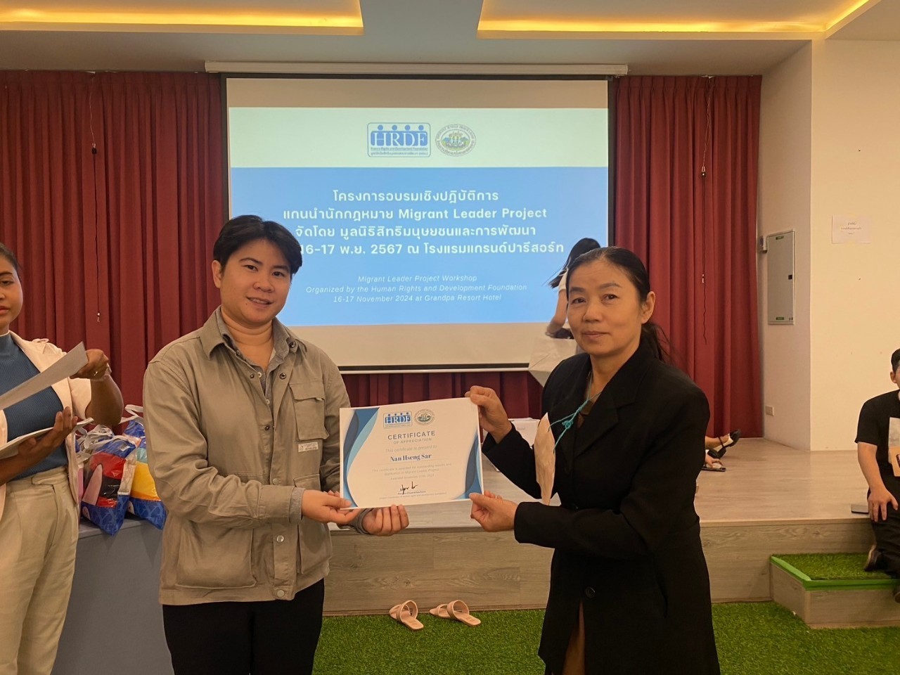 On November 16 and 17, 2024, the Human Rights and Development Foundation, in collaboration with the กลุ่มคนงานหญิงเพื่อความยุติธรรม WJG and the Migrant Workers Federation, organized a two-day workshop to discuss and summarize the creation of volunteer legal leaders in migrant worker communities. The event, which took place at the Grand Pa Resort Hotel in Lamphun Province, covered both Chiang Mai and Lamphun areas.