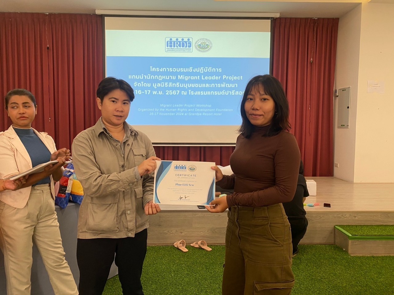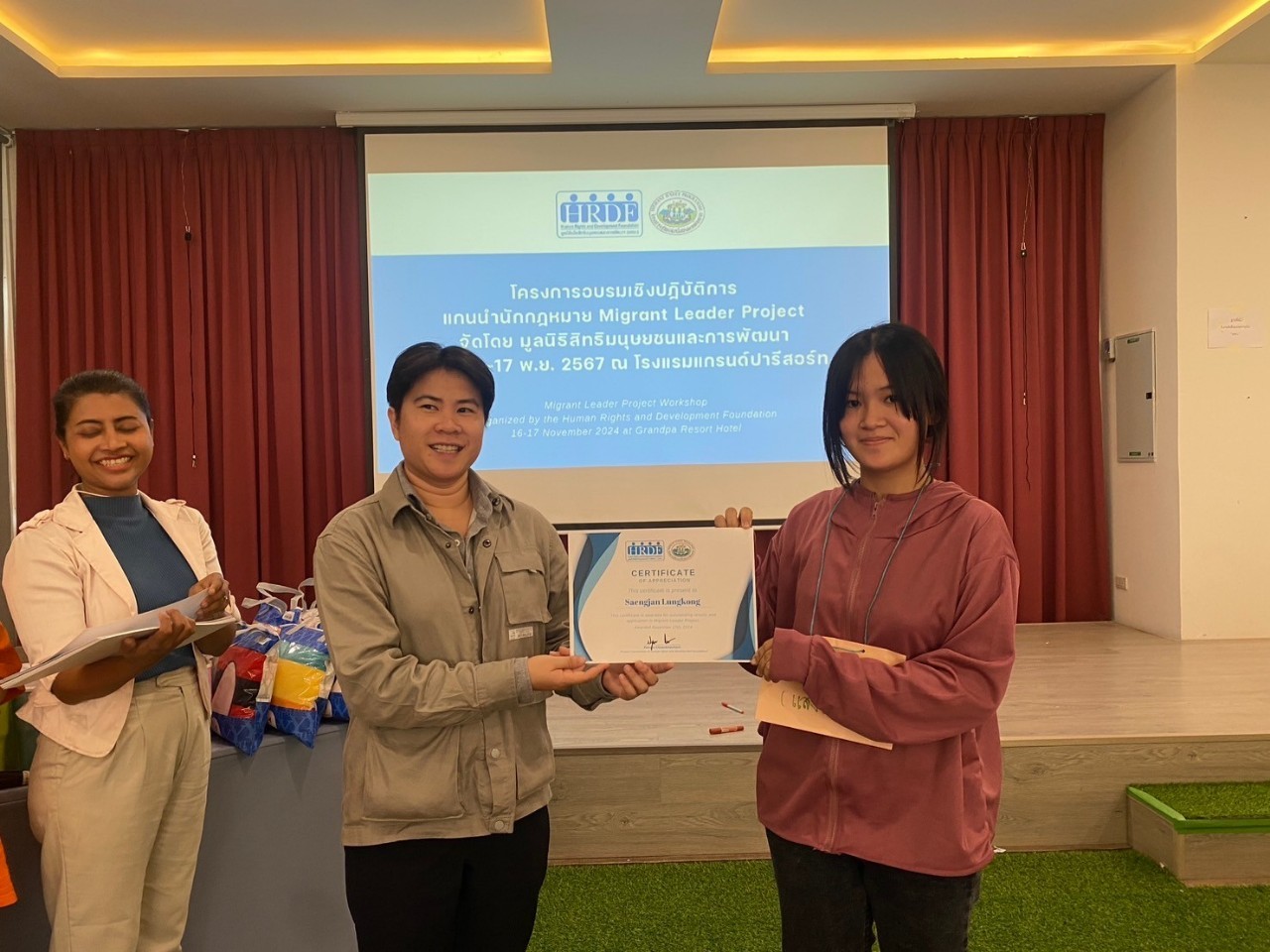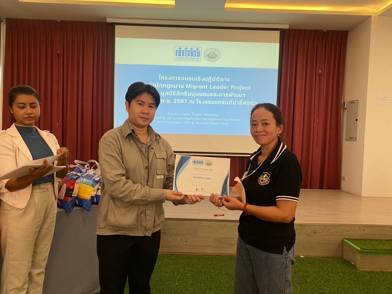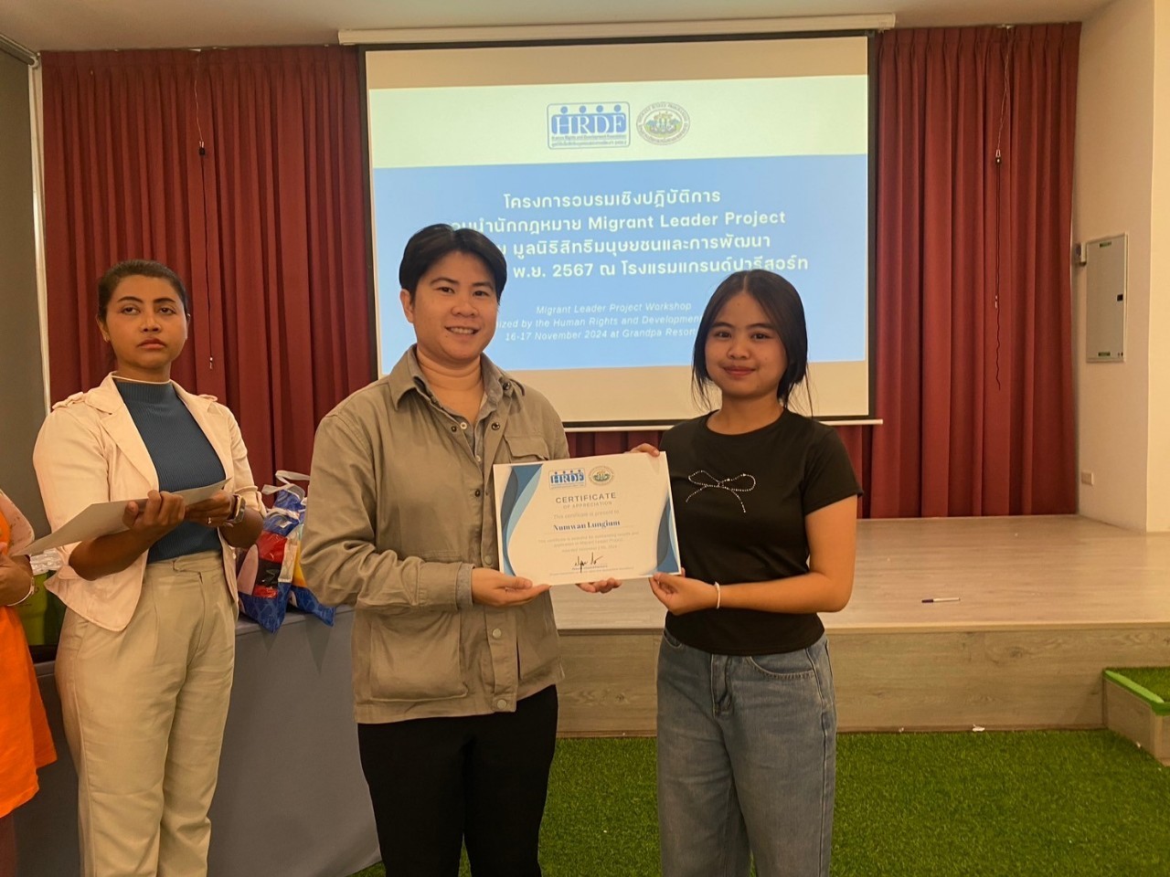 On November 16 and 17, 2024, the Human Rights and Development Foundation, in collaboration with the กลุ่มคนงานหญิงเพื่อความยุติธรรม WJG and the Migrant Workers Federation, organized a two-day workshop to discuss and summarize the creation of volunteer legal leaders in migrant worker communities. The event, which took place at the Grand Pa Resort Hotel in Lamphun Province, covered both Chiang Mai and Lamphun areas.