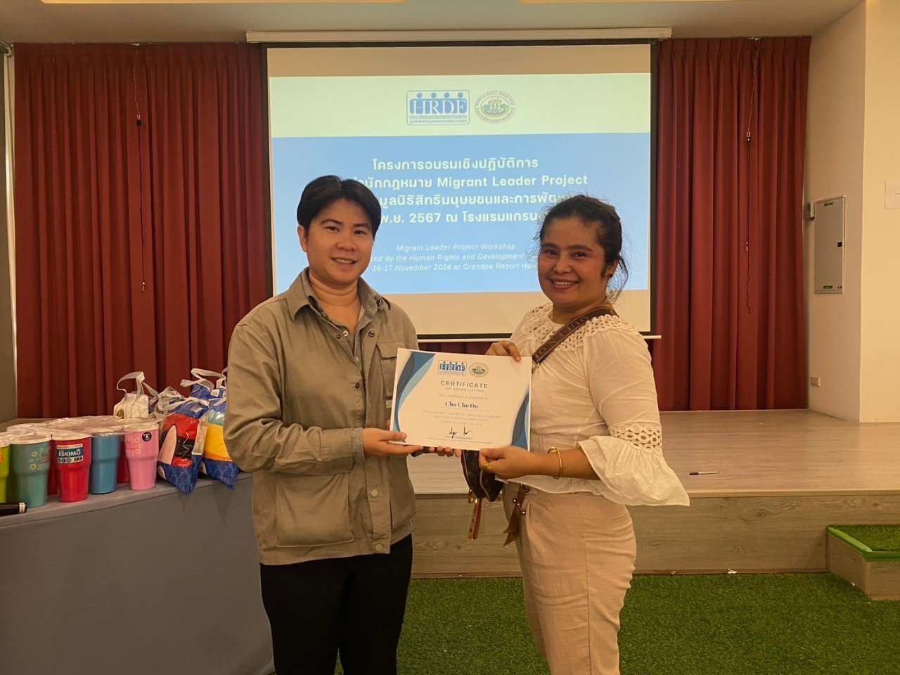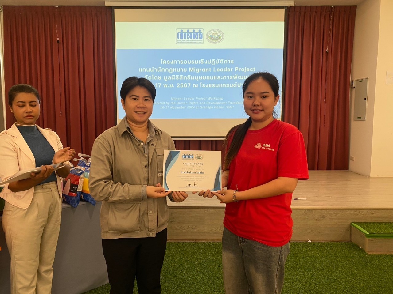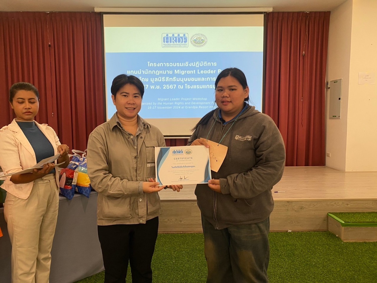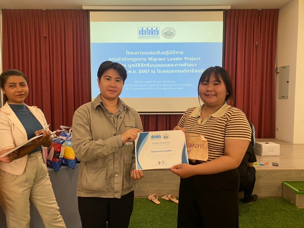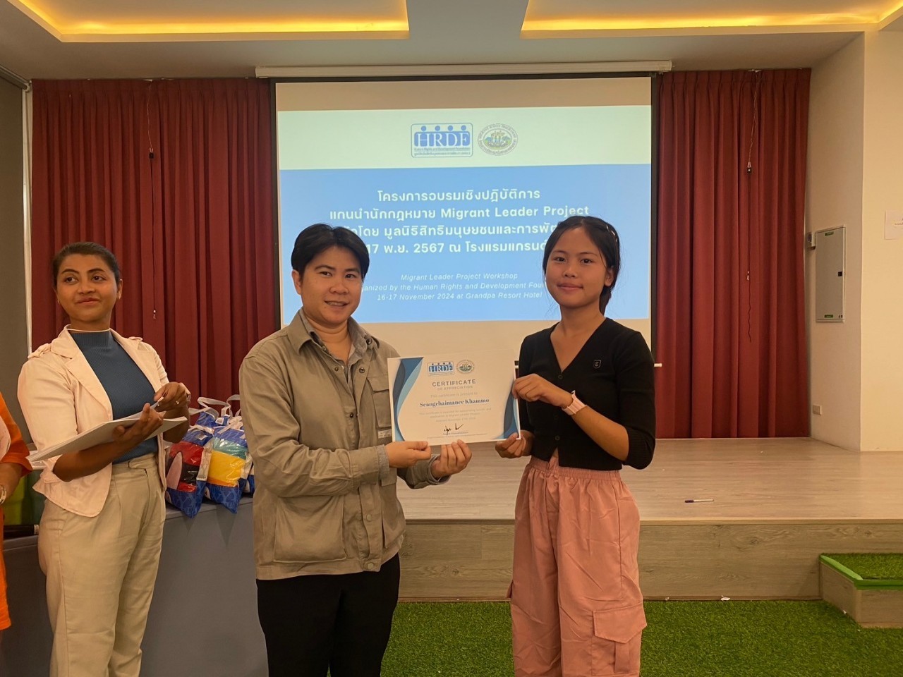On November 16 and 17, 2024, the Human Rights and Development Foundation, in collaboration with the กลุ่มคนงานหญิงเพื่อความยุติธรรม WJG and the Migrant Workers Federation, organized a two-day workshop to discuss and summarize the creation of volunteer legal leaders in migrant worker communities. The event, which took place at the Grand Pa Resort Hotel in Lamphun Province, covered both Chiang Mai and Lamphun areas.