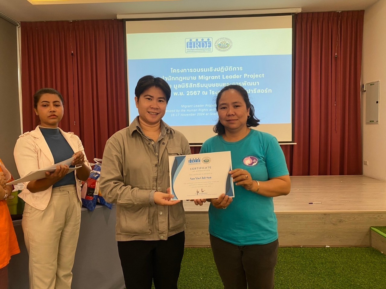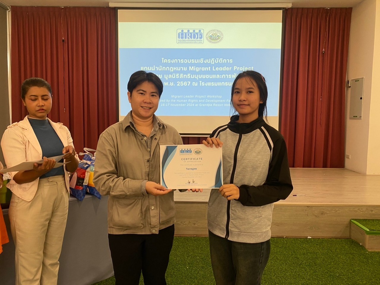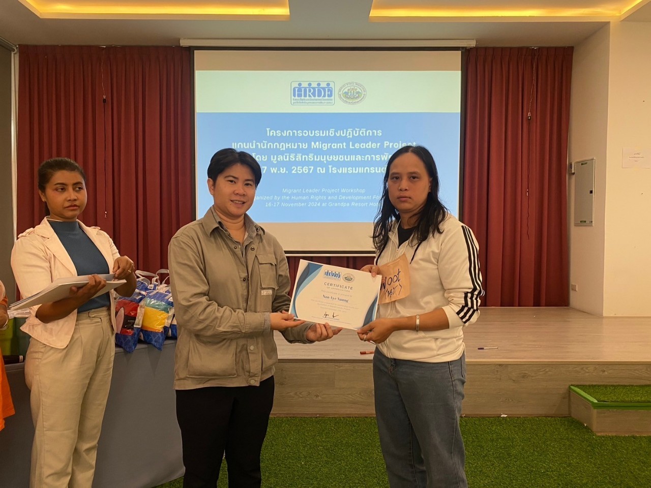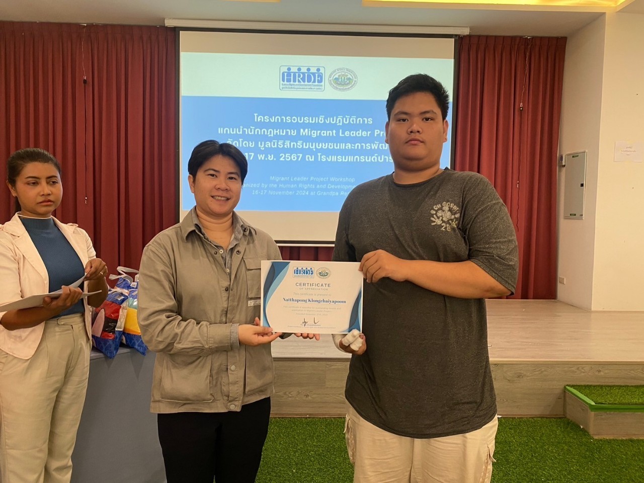 On November 16 and 17, 2024, the Human Rights and Development Foundation, in collaboration with the กลุ่มคนงานหญิงเพื่อความยุติธรรม WJG and the Migrant Workers Federation, organized a two-day workshop to discuss and summarize the creation of volunteer legal leaders in migrant worker communities. The event, which took place at the Grand Pa Resort Hotel in Lamphun Province, covered both Chiang Mai and Lamphun areas.