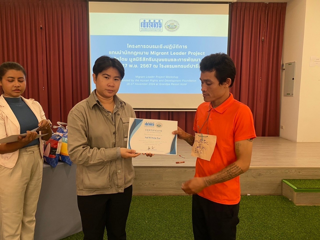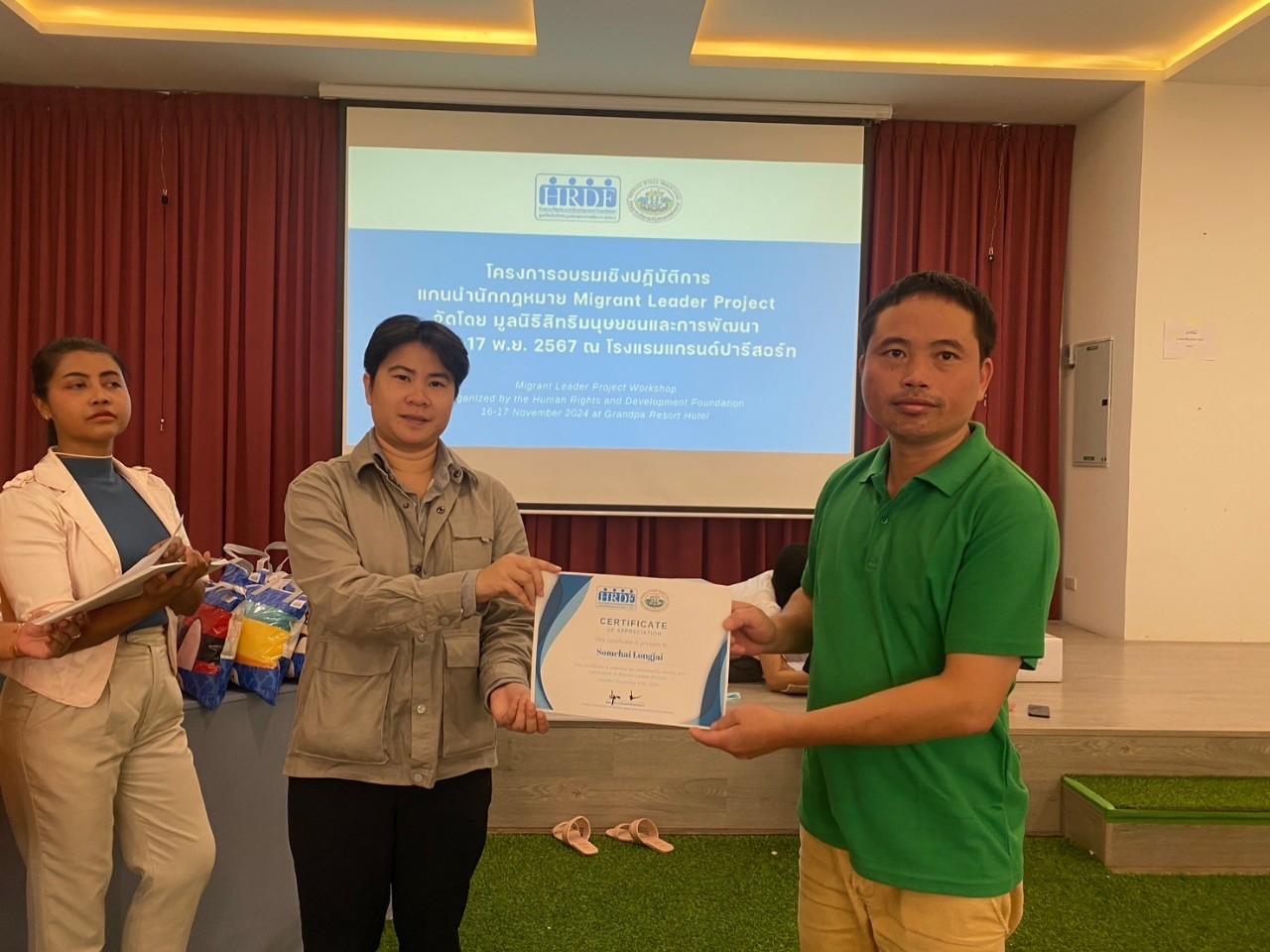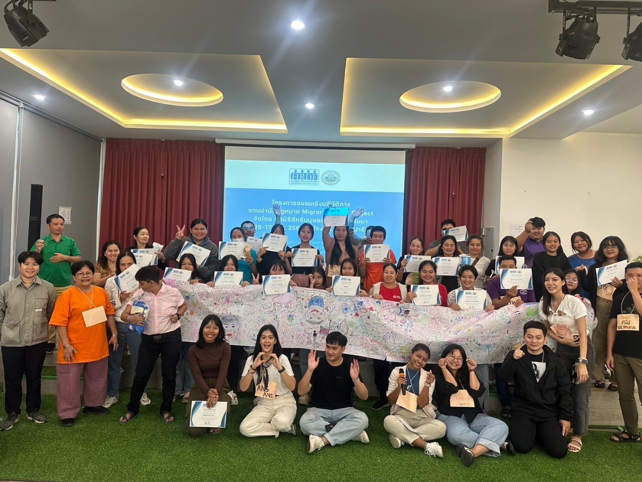 The workshop included training from relevant government agencies, such as the Department of Labor Protection and Welfare, the Employment Office, and the Social Security Office, to provide knowledge on migrant worker rights and related legal processes.