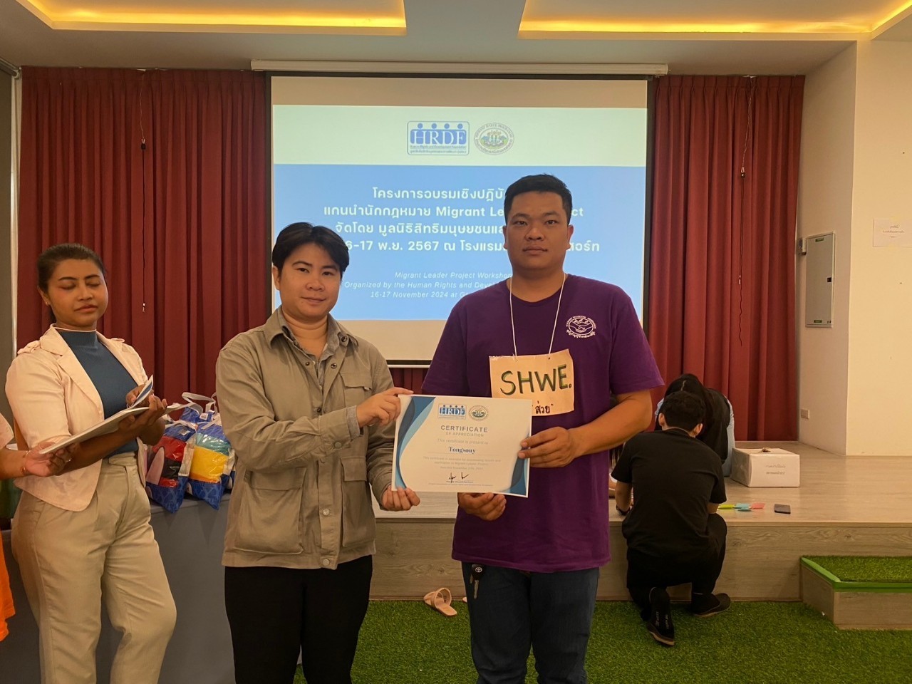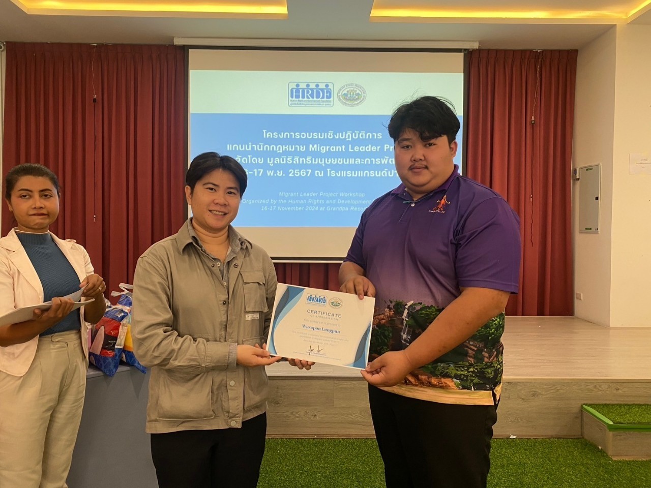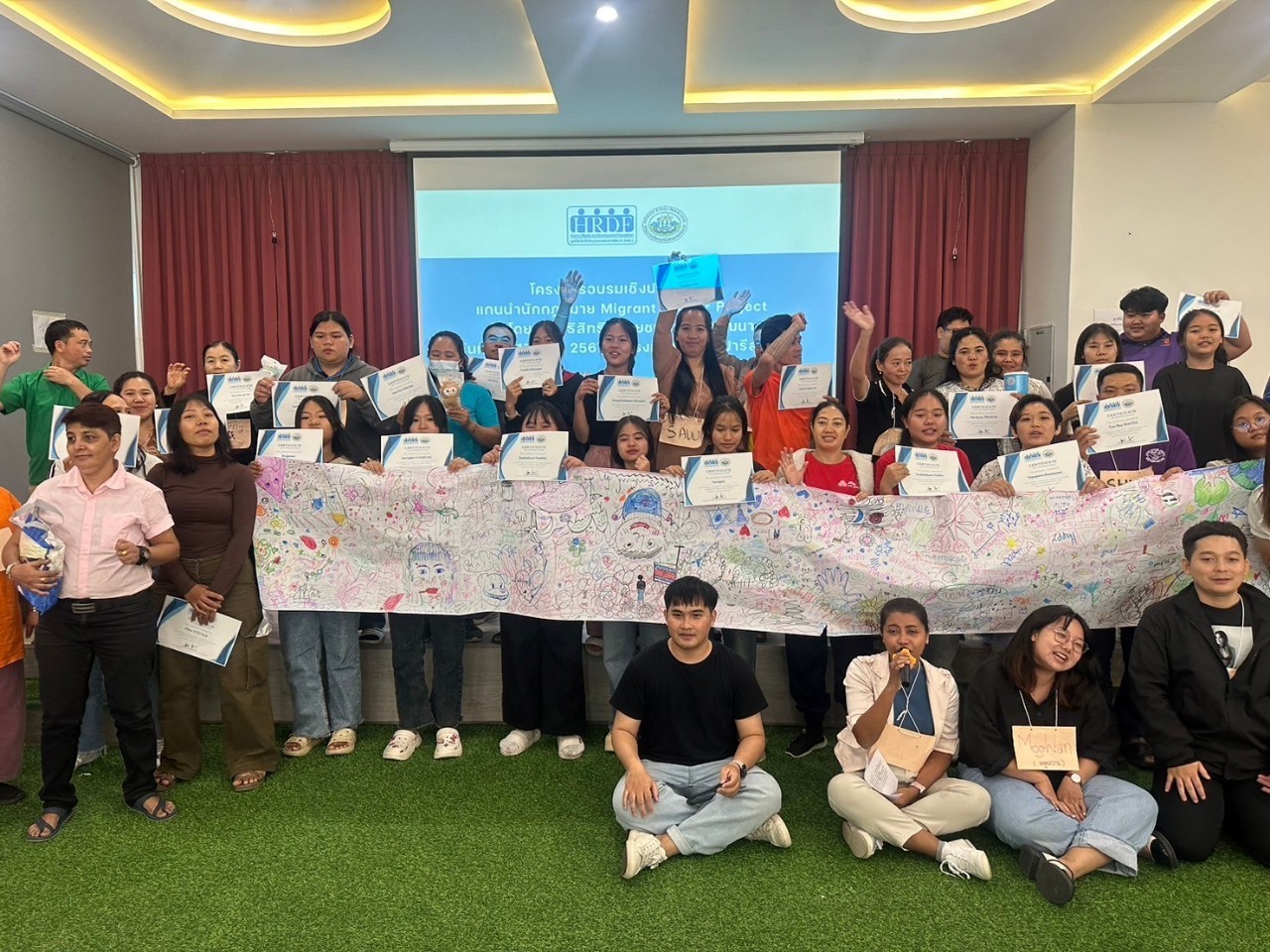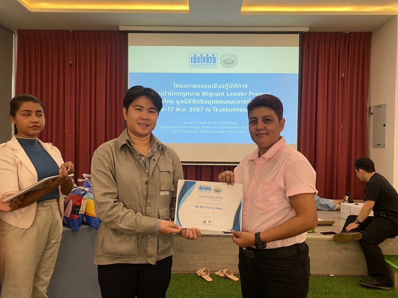 The workshop included training from relevant government agencies, such as the Department of Labor Protection and Welfare, the Employment Office, and the Social Security Office, to provide knowledge on migrant worker rights and related legal processes.