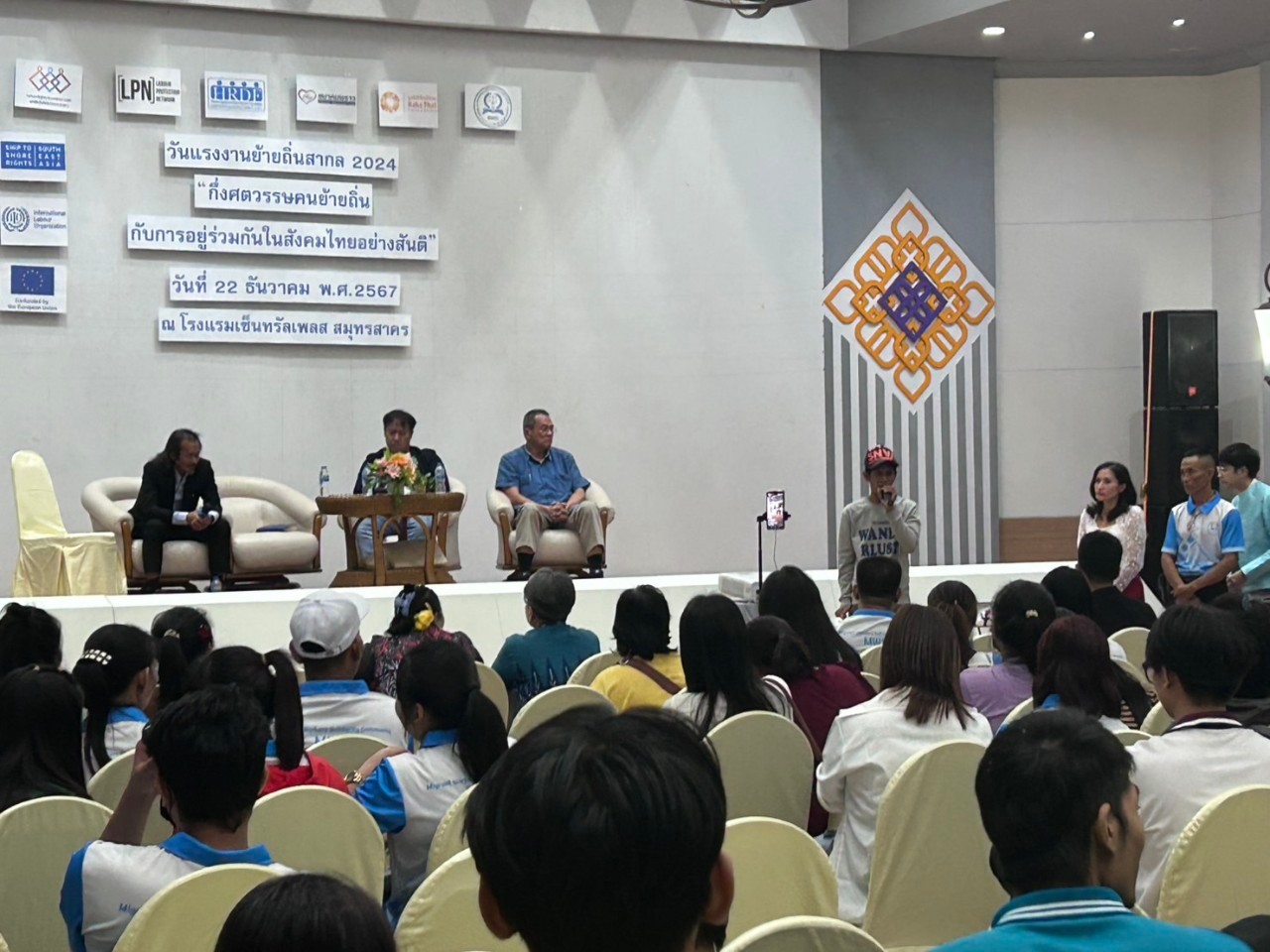 เนื่องในโอกาส วันผู้อพยพย้ายถิ่นฐานสากล (International Migrants Day) ซึ่งจัดขึ้นทุกวันที่ 18 ธันวาคม เครือข่ายองค์กรภาคประชาสังคมด้านประชากรข้ามชาติสมุทรสาคร (6 องค์กร) ร่วมกันจัดงานเพื่อรำลึกและส่งเสริมสิทธิมนุษยชนและสิทธิแรงงานของแรงงานข้ามชาติ กิจกรรมครั้งนี้จัดขึ้นในรูปแบบเวทีเสวนา เพื่อให้เกิดความตระหนักรู้เกี่ยวกับการย้ายถิ่นในยุคโลกาภิวัตน์และผลกระทบต่อสังคม เศรษฐกิจ และวัฒนธรรม พร้อมทั้งส่งเสริมการปฏิบัติต่อแรงงานข้ามชาติอย่างเท่าเทียม