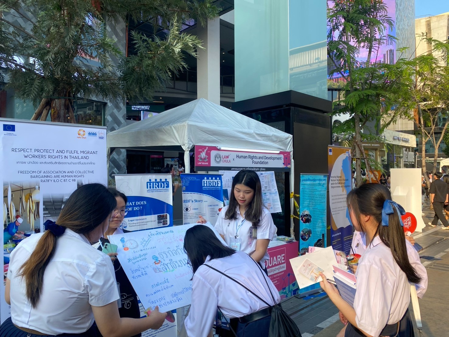 ภายในงาน มูลนิธิ HRDF ได้ร่วมจัดบูธในโซน “กฎหมายระหว่างประเทศใช่ว่าไกลตัว” ให้ความรู้เกี่ยวกับ แรงงานข้ามชาติ โดยมี