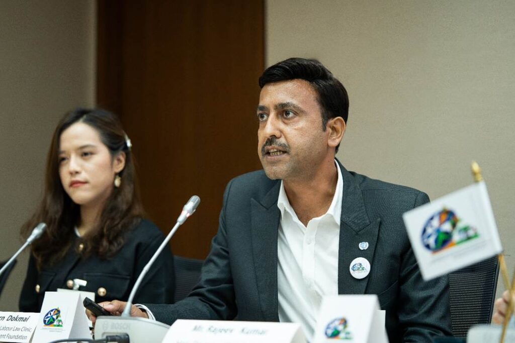 ราจีฟ กุมาร (APSWDP อินเดีย) จากคลินิกให้ความช่วยเหลือทางกฎหมาย Samta Nyay Kendra ได้กล่าวในเวทีนี้ในหัวข้อ: นวัตกรรมเพื่อความเท่าเทียม: คลินิกกฎหมายสำหรับคนข้ามเพศในอินเดีย ซึ่งกำลังก้าวหน้าในการส่งเสริมสิทธิของคนข้ามเพศ ผ่านการให้ความช่วยเหลือทางกฎหมาย การจ้างงานที่ครอบคลุมความหลากหลาย และรูปแบบการเสริมพลังที่สามารถขยายผลได้ ใช้แนวทางการขับเคลื่อนการเปลี่ยนแปลงจากฐานชุมชน เพื่อให้กลุ่มคนข้ามเพศในอินเดียเข้าถึงสิทธิและโอกาสอย่างเท่าเทียมในทุกมิติของชีวิต