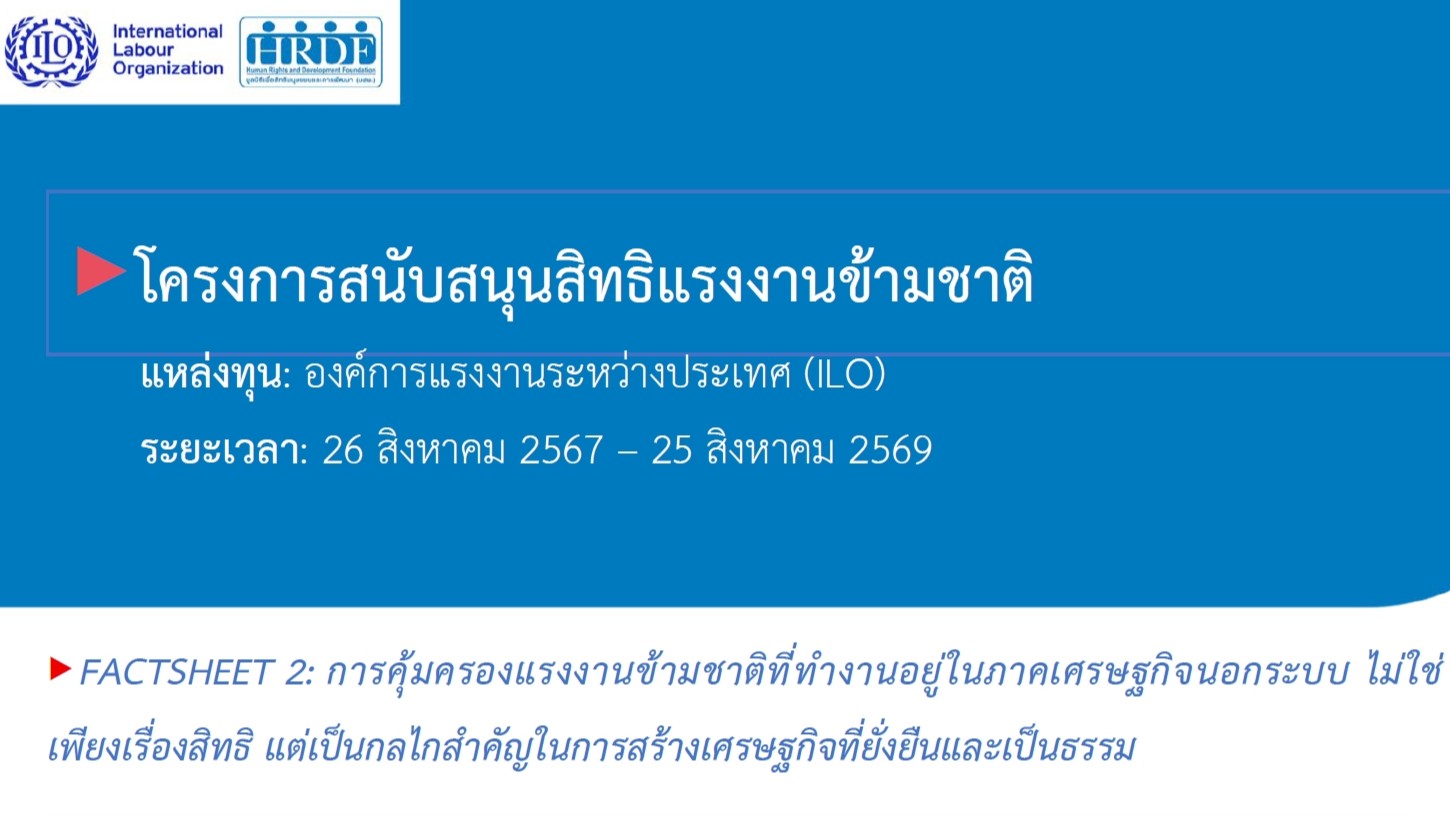 “แรงงานข้ามชาติเป็นกลุ่มแรงงานที่สำคัญต่อเศรษฐกิจไทย แต่แรงงานจำนวนมากยังอยู่ในระบบการจ้างงานนอกระบบ…ทำให้ไม่ได้รับความคุ้มครองตามกฎหมายแรงงานและสวัสดิการทางสังคมอย่างที่ควร ส่งผลกระทบทั้งต่อแรงงาน ภาคธุรกิจ และเสถียรภาพทางเศรษฐกิจของประเทศ”