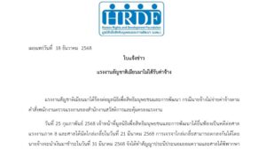 ติดต่อข้อมูลเพิ่มเติม : มูลนิธิเพื่อสิทธิมนุษยชนและการพัฒนา (HRDF)