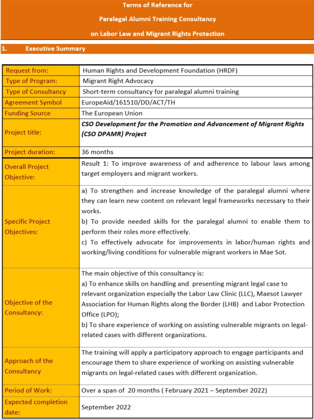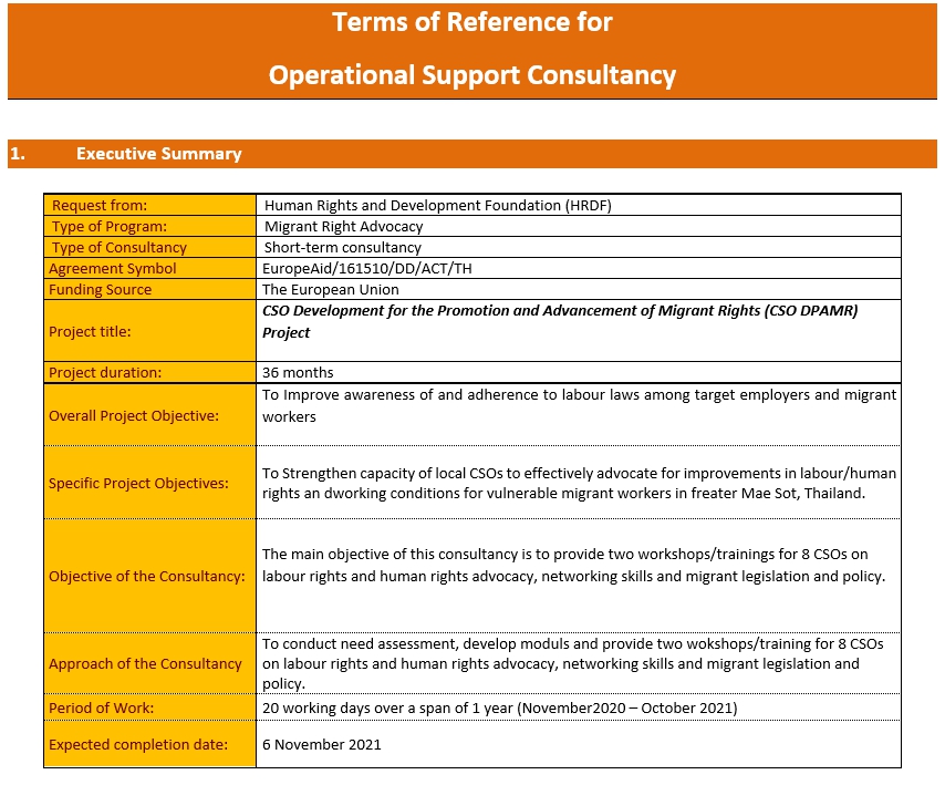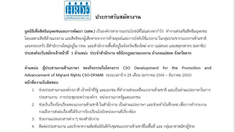 รับสมัคร : ผู้ประสานงานด้านภาษา ของกิจกรรมในโครงการ CSO Development for the Promotion and Advancement of Migrant Rights CSO-DPAMR