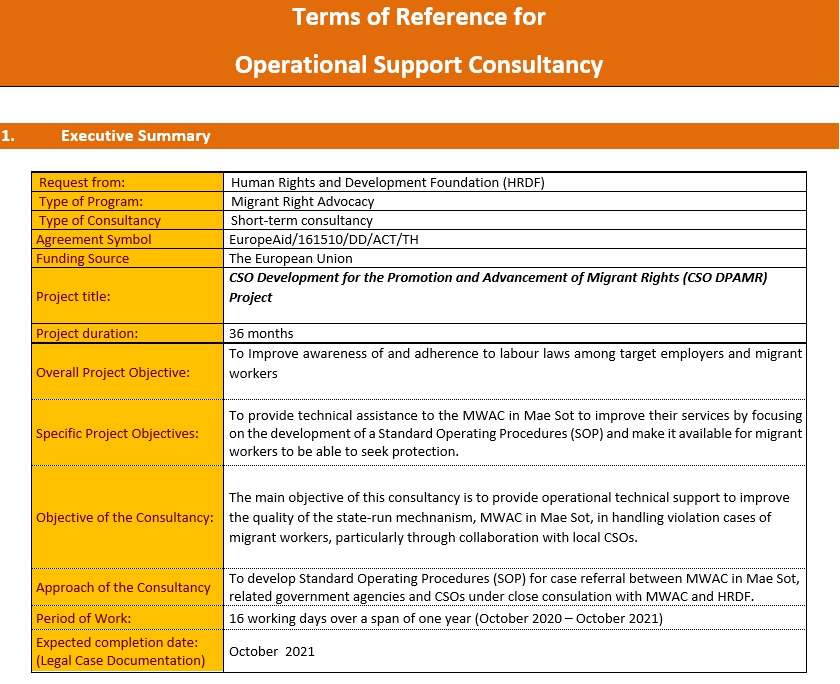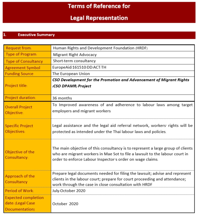 รับสมัคร: ผู้ช่วยเหลือด้านสิทธิแรงงาน/ เจ้าหน้าที่นักกฎหมาย 1 ตำแหน่ง ประจำสำนักงานที่จังหวัดระนอง