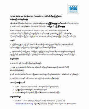 รับสมัครงาน : เจ้าหน้าที่ตำแหน่งผู้ช่วยผู้ประสานงานโครงการยุติธรรมเพื่อแรงงานข้ามชาติประจำพื้นที่ จ.สมุทรสาคร