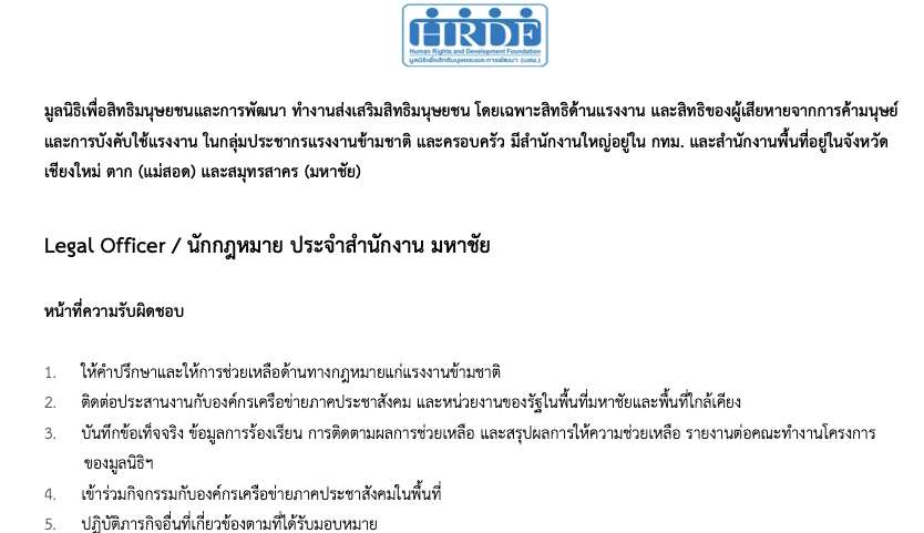 รับสมัคร: นักกฎหมาย ประจำสำนักงาน มหาชัย